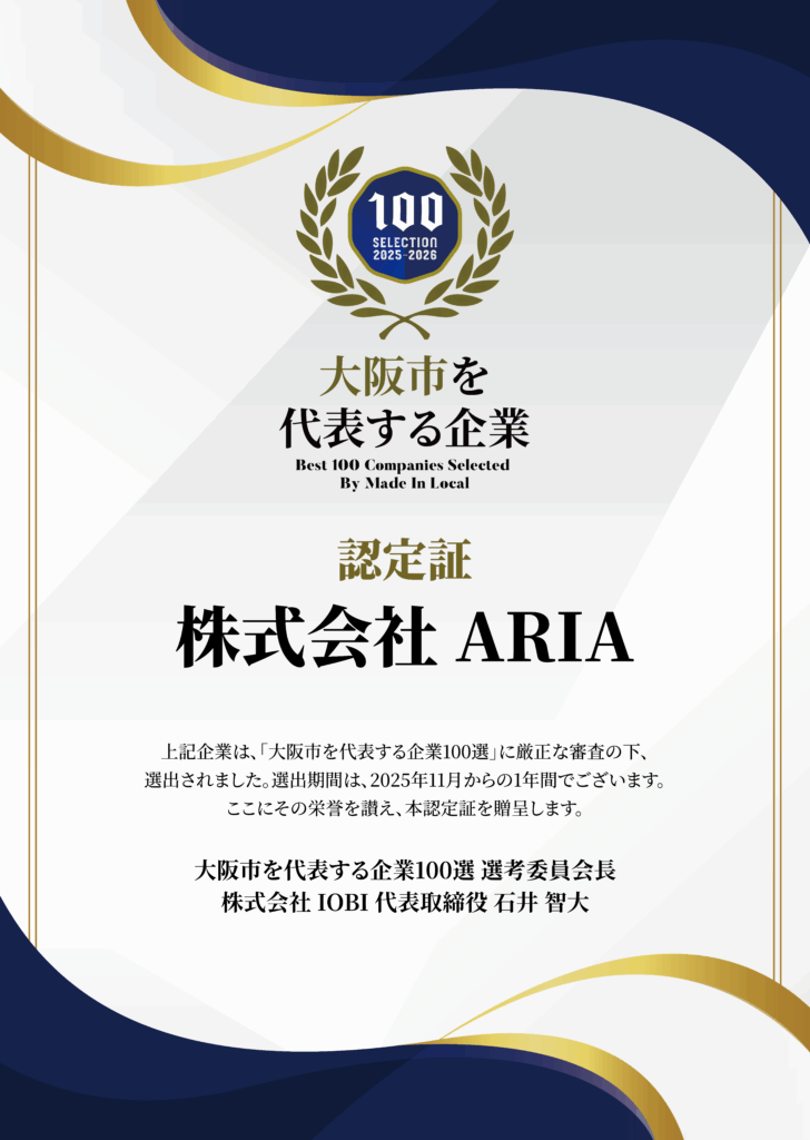 このたび、NewGate訪問看護ステーション(株式会社ARIA)が 「大阪市を代表する企業100選」に選出されました!